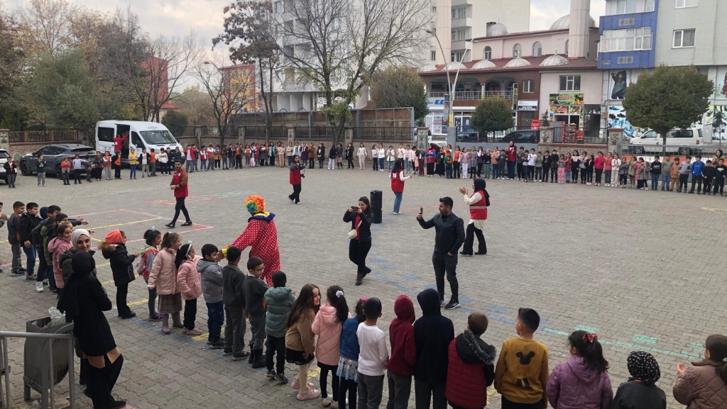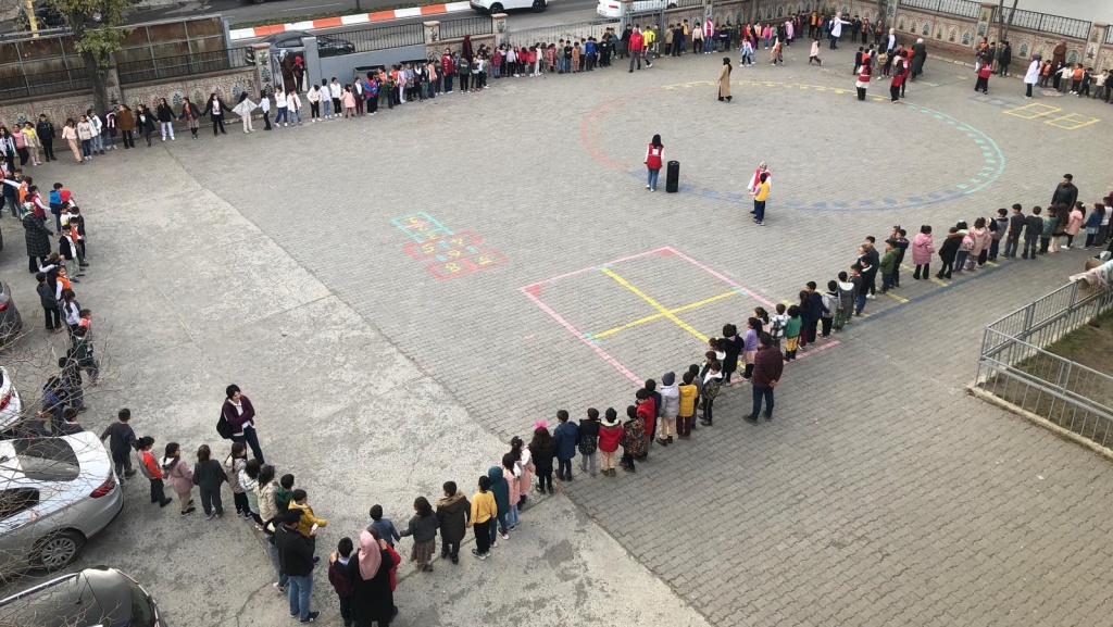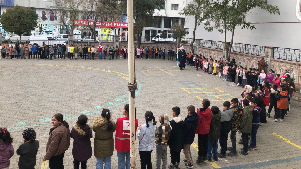 Kızılay gönüllüleri Ağrı'da minik kalplerle buluştu.Kızılay Ağrı Şube Başkanlığı gönüllüleri,Kızılay'ın kuruluşu yıldönümü nedeniyle anlamlı bir etkinlik gerçekleştirerek Şeref saraçoğlu ilkokulu öğrencileleriyle bir araya geldi.